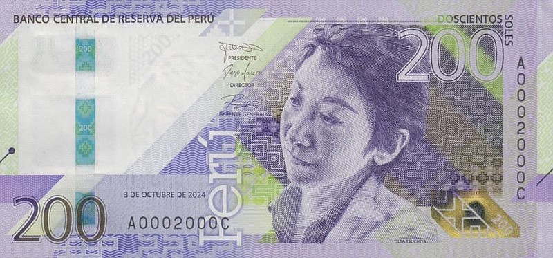 The Central Reserve Bank of Peru has issued a new version of the 200 soles banknote.